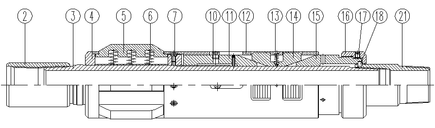 11. Apply pipe dope to bottom thread of body (3) and install bottom sub (21). Make wrench tight.